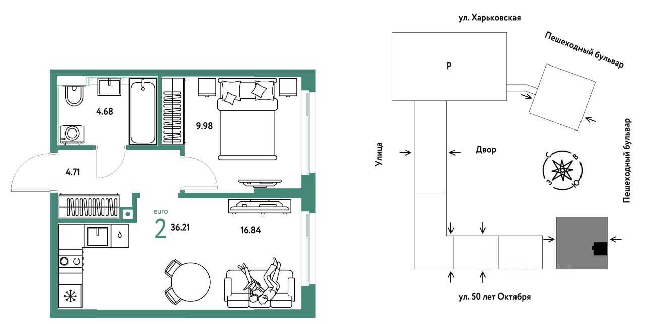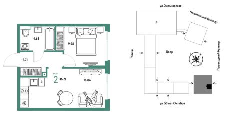 Продается 2комнатная квартира на 18 этаже от застройщика Страна Девелопмент. Площадь квартиры 36,21 кв. м.