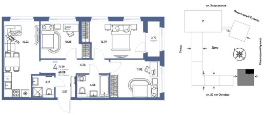 - Основная идея благоустройства дворов — создание камерного, уютного пространства. Периметры кварталов образуют закрытые контуры, внутри которых расположились тихие дворы с местами для отдыха, игровыми и релакс-зонами. Благодаря сквозным парадным во дворе нет машин. Защита от посторонних, служба охраны и видеонаблюдение 24/7 — гарантия безопасности вашей семьи.