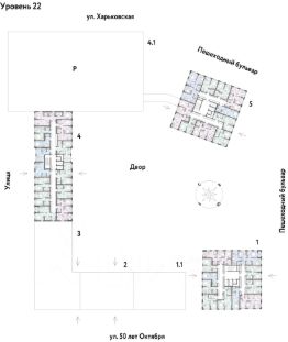- Основная идея благоустройства дворов — создание камерного, уютного пространства. Периметры кварталов образуют закрытые контуры, внутри которых расположились тихие дворы с местами для отдыха, игровыми и релакс-зонами. Благодаря сквозным парадным во дворе нет машин. Защита от посторонних, служба охраны и видеонаблюдение 24/7 — гарантия безопасности вашей семьи.