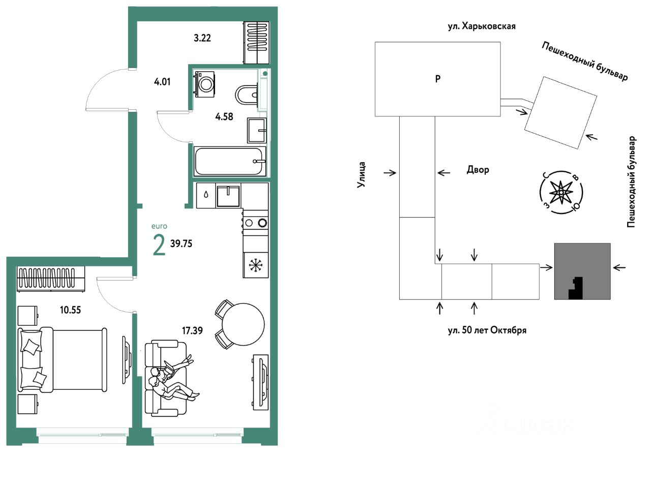 Продается 2комнатная квартира на 23 этаже от застройщика Страна Девелопмент. Площадь квартиры 39,75 кв. м.