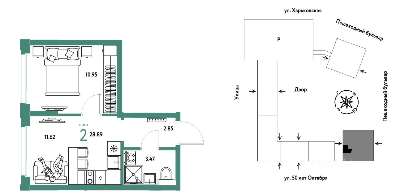 Продается 2комнатная квартира на 23 этаже от застройщика Страна Девелопмент. Площадь квартиры 28,89 кв. м.