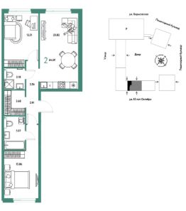 Продается 2комнатная квартира на 9 этаже от застройщика Страна Девелопмент. Площадь квартиры 64,59 кв. м.
