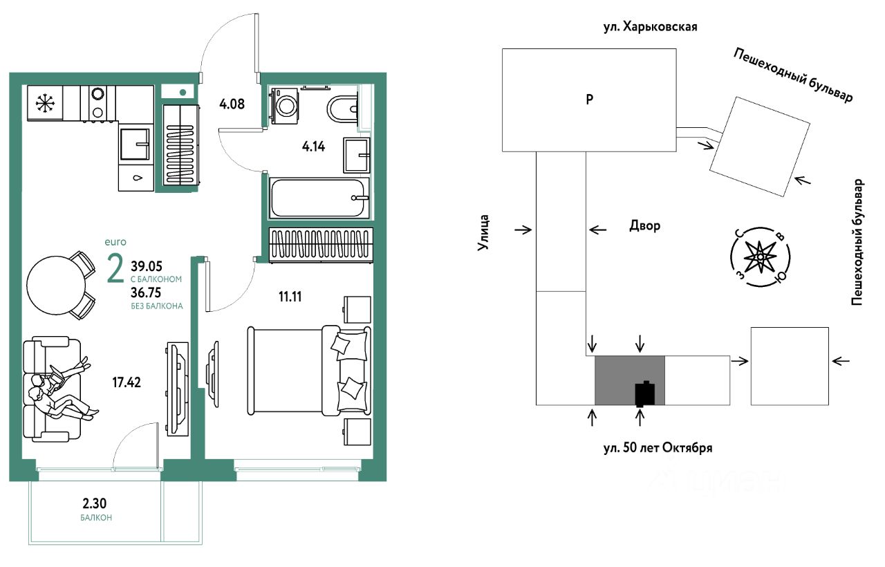 Продается 2комнатная квартира на 10 этаже от застройщика Страна Девелопмент. Площадь квартиры 39,05 кв. м.