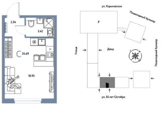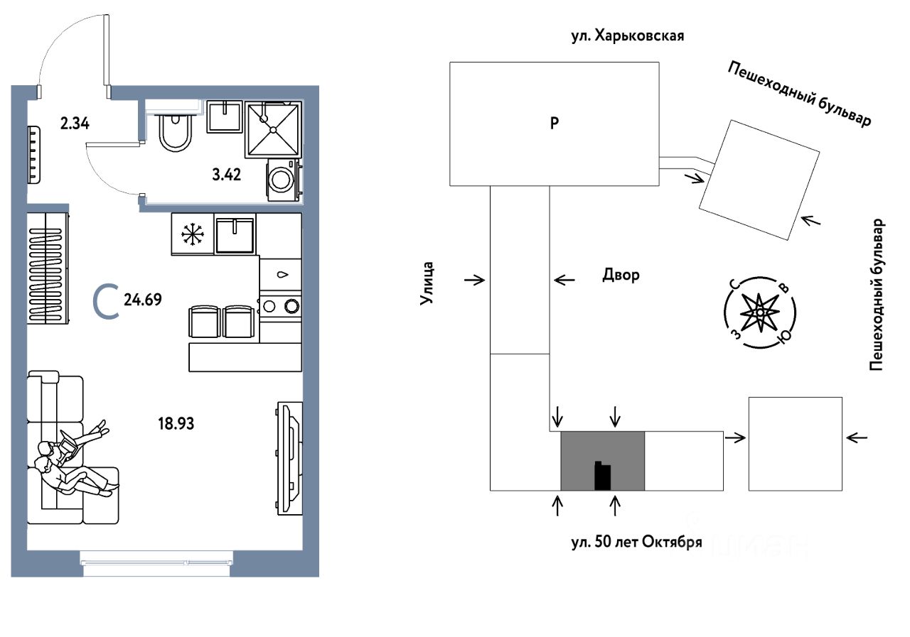 Продается 1комнатная квартира на 10 этаже от застройщика Страна Девелопмент. Площадь квартиры 24,69 кв. м.
