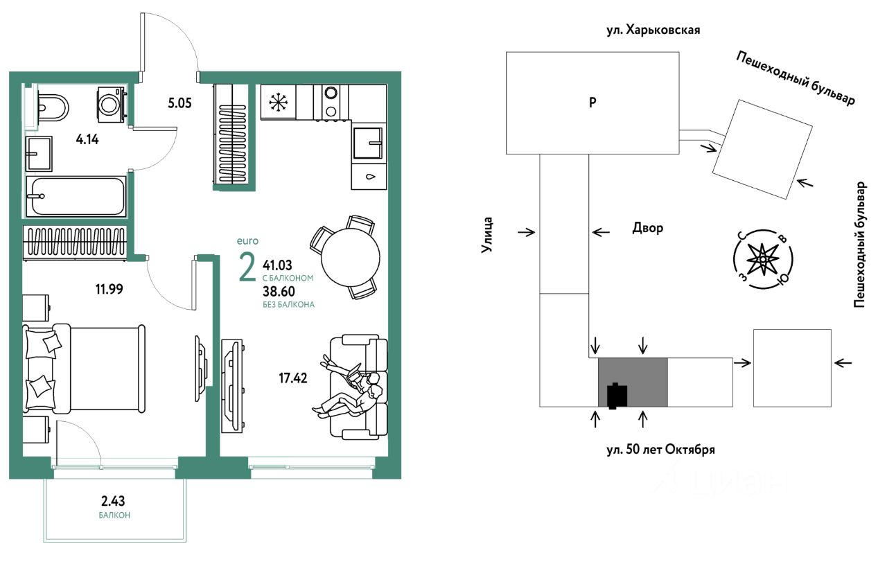 Продается 2комнатная квартира на 11 этаже от застройщика Страна Девелопмент. Площадь квартиры 41,03 кв. м.