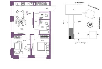 Продается 3комнатная квартира на 3 этаже от застройщика Страна Девелопмент. Площадь квартиры 57,76 кв. м.