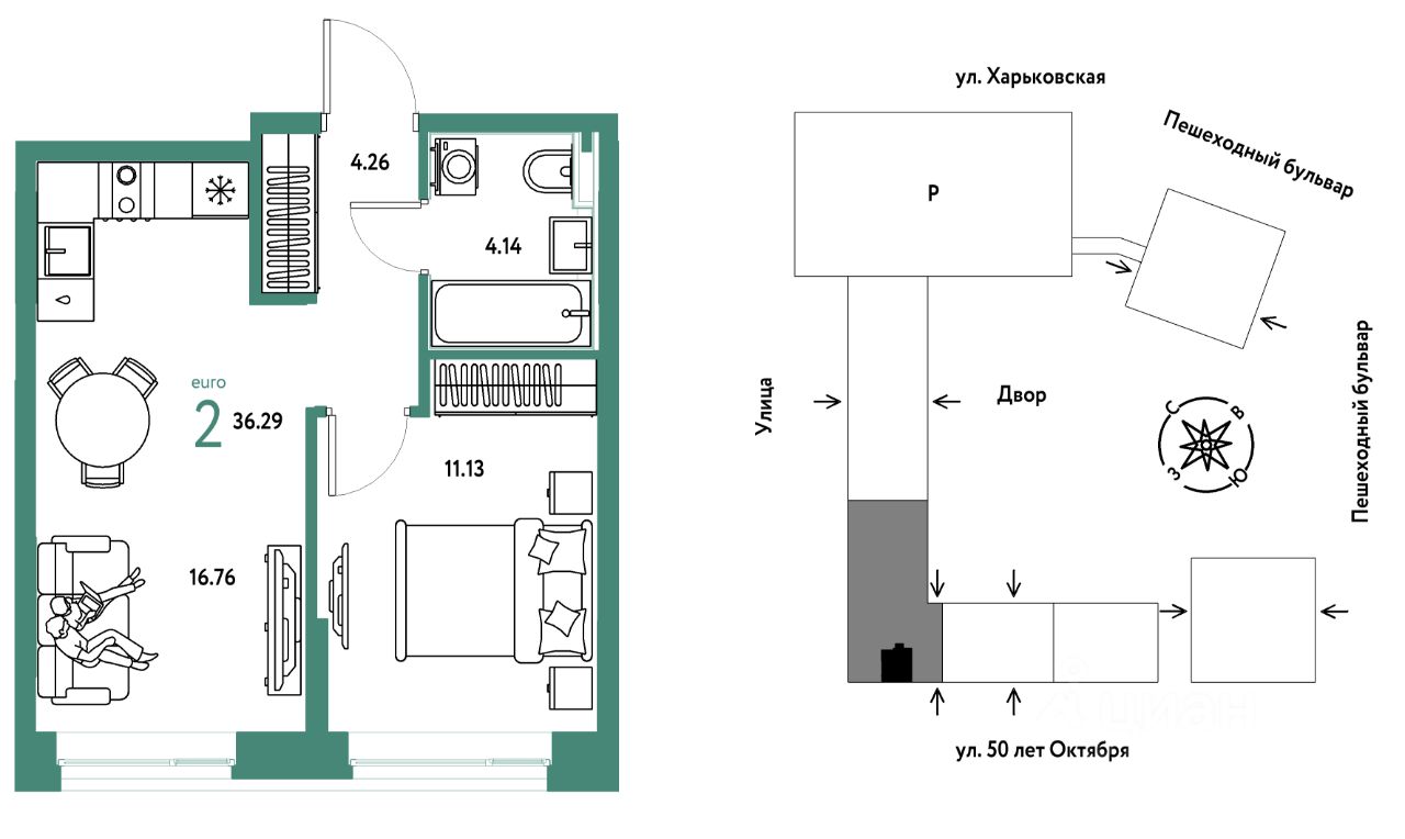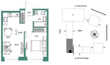 Продается 2комнатная квартира на 4 этаже от застройщика Страна Девелопмент. Площадь квартиры 36,29 кв. м.
