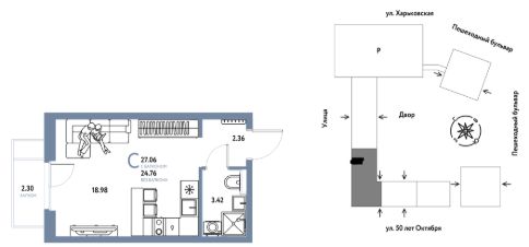 Продается 1комнатная квартира на 8 этаже от застройщика Страна Девелопмент. Площадь квартиры 27,06 кв. м.