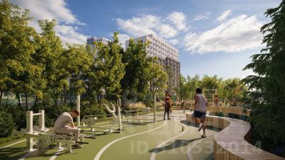 - Основная идея благоустройства дворов — создание камерного, уютного пространства. Периметры кварталов образуют закрытые контуры, внутри которых расположились тихие дворы с местами для отдыха, игровыми и релакс-зонами. Благодаря сквозным парадным во дворе нет машин. Защита от посторонних, служба охраны и видеонаблюдение 24/7 — гарантия безопасности вашей семьи.