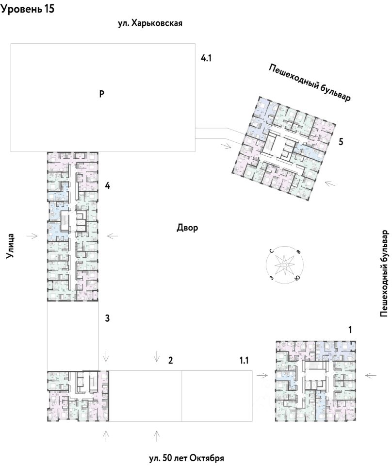 - Основная идея благоустройства дворов — создание камерного, уютного пространства. Периметры кварталов образуют закрытые контуры, внутри которых расположились тихие дворы с местами для отдыха, игровыми и релакс-зонами. Благодаря сквозным парадным во дворе нет машин. Защита от посторонних, служба охраны и видеонаблюдение 24/7 — гарантия безопасности вашей семьи.