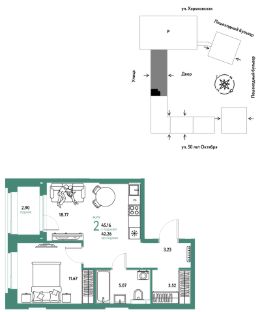 Продается 2комнатная квартира на 5 этаже от застройщика Страна Девелопмент. Площадь квартиры 45,16 кв. м.