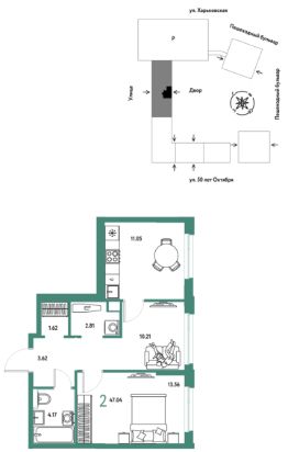 Продается 2комнатная квартира на 11 этаже от застройщика Страна Девелопмент. Площадь квартиры 47,04 кв. м.