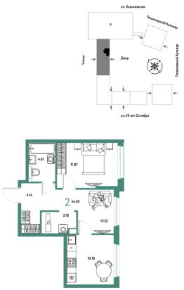 Продается 2комнатная квартира на 15 этаже от застройщика Страна Девелопмент. Площадь квартиры 44,5 кв. м.