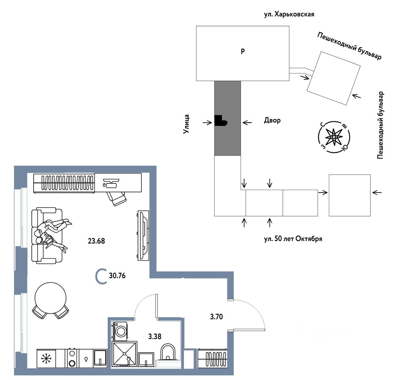 - Основная идея благоустройства дворов — создание камерного, уютного пространства. Периметры кварталов образуют закрытые контуры, внутри которых расположились тихие дворы с местами для отдыха, игровыми и релакс-зонами. Благодаря сквозным парадным во дворе нет машин. Защита от посторонних, служба охраны и видеонаблюдение 24/7 — гарантия безопасности вашей семьи.