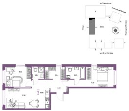 Продается 3комнатная квартира на 22 этаже от застройщика Страна Девелопмент. Площадь квартиры 65,02 кв. м.