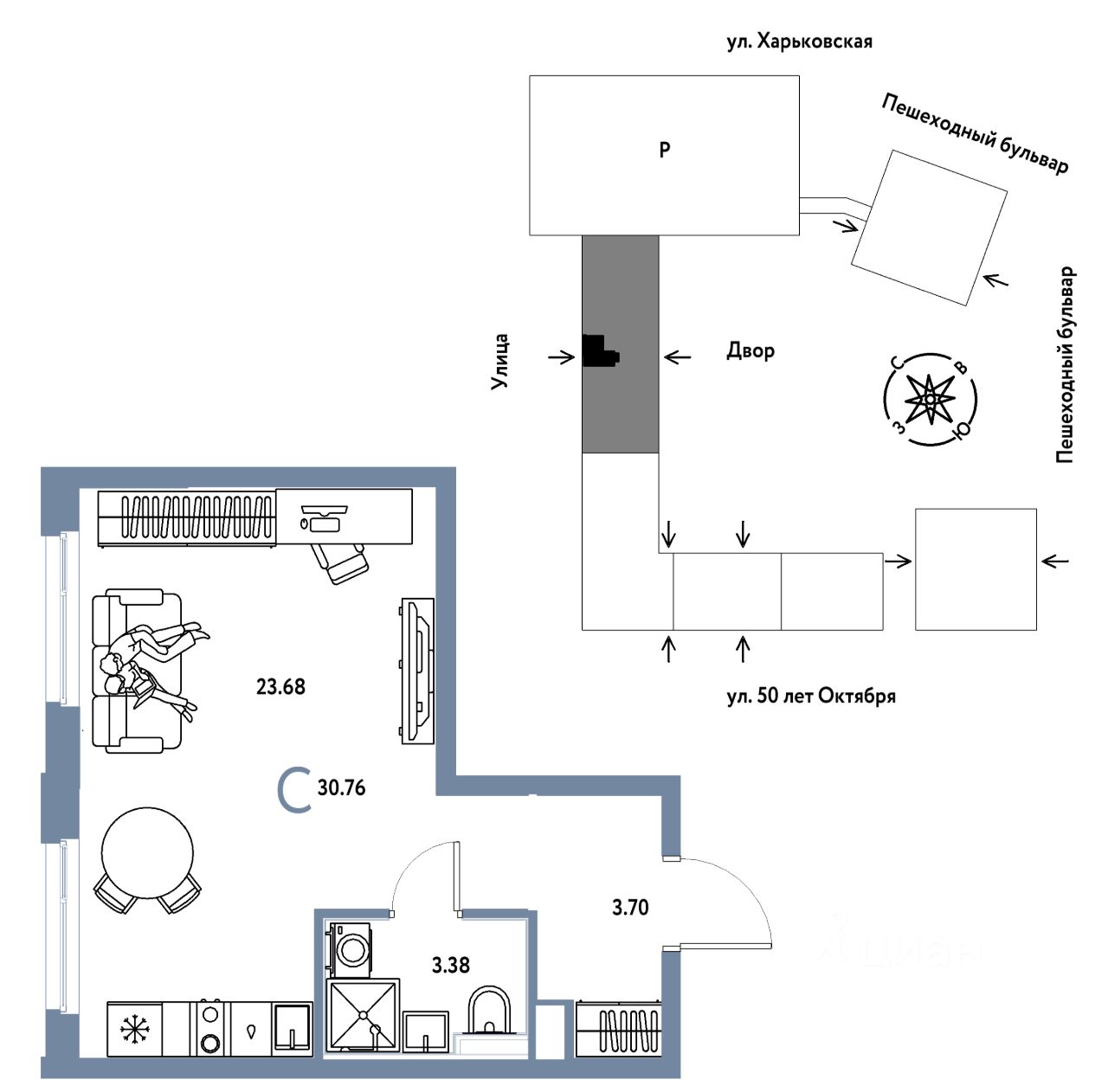 Продается 1комнатная квартира на 22 этаже от застройщика Страна Девелопмент. Площадь квартиры 30,76 кв. м.