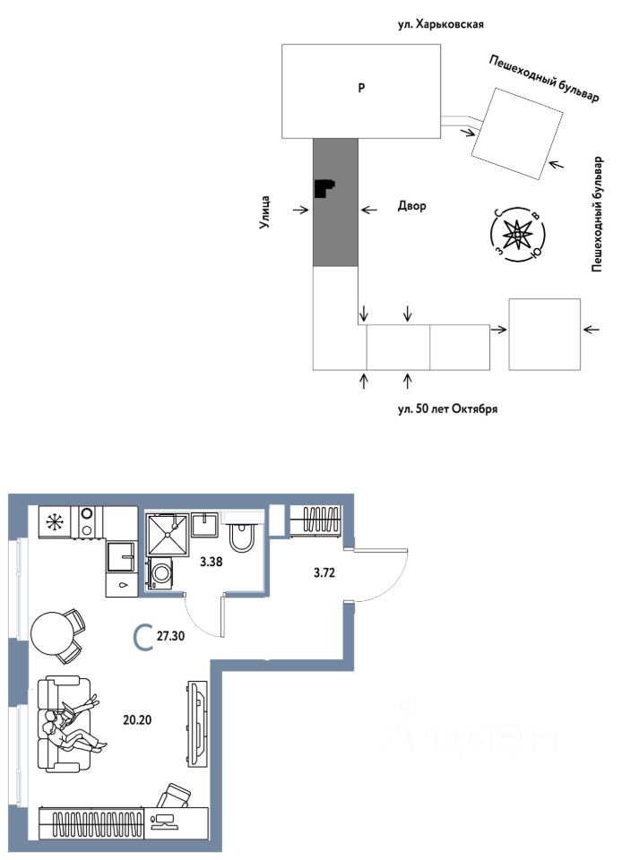 Продается 1комнатная квартира на 23 этаже от застройщика Страна Девелопмент. Площадь квартиры 27,3 кв. м.