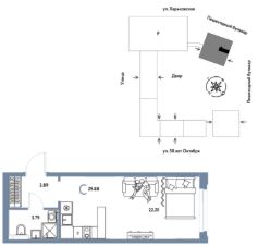 Продается 1комнатная квартира на 17 этаже от застройщика Страна Девелопмент. Площадь квартиры 29,88 кв. м.
