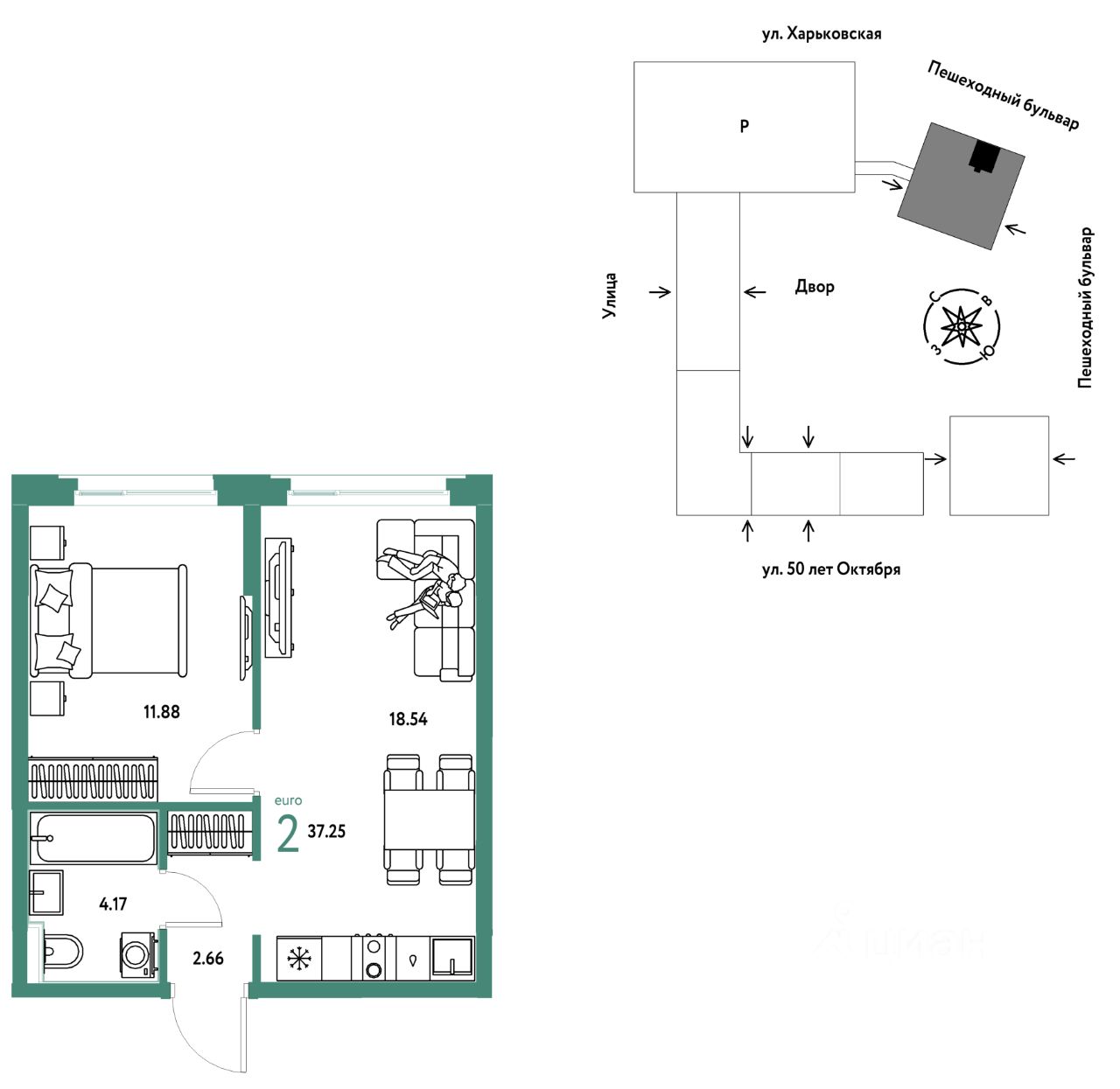 Продается 2комнатная квартира на 18 этаже от застройщика Страна Девелопмент. Площадь квартиры 37,25 кв. м.