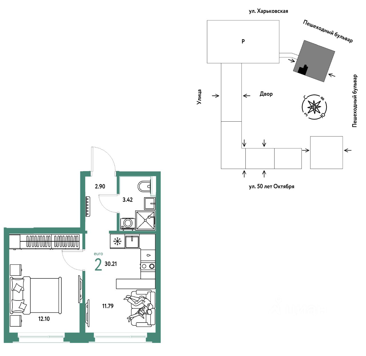 Продается 2комнатная квартира на 20 этаже от застройщика Страна Девелопмент. Площадь квартиры 30,21 кв. м.