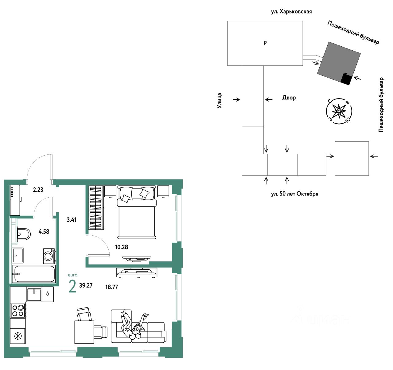 Продается 2комнатная квартира на 21 этаже от застройщика Страна Девелопмент. Площадь квартиры 39,27 кв. м.
