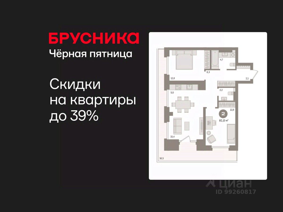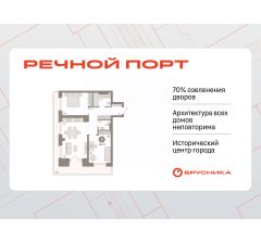 Квартира с кухней-гостиной и двумя спальнями в жилом районе "Речной порт". Особенности планировки: второй санузел, окна в пол, вид во двор, предчистовая отделка, балкон.