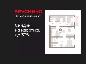 Квартира с кухней-гостиной и двумя спальнями в жилом районе "Зарека". Особенности планировки: гардеробная, разнесённые спальни, предчистовая отделка, мастер-спальня, балкон.