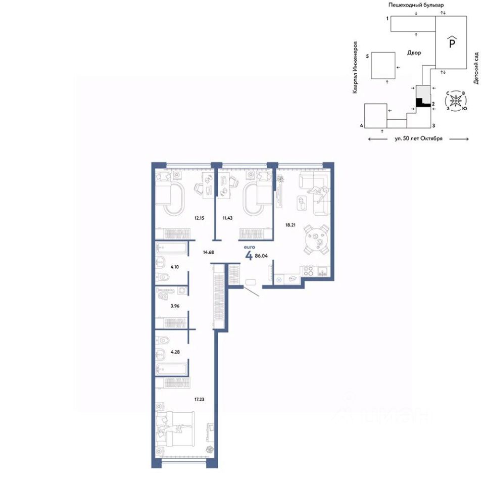 Продается 4комнатная квартира на 8 этаже от застройщика Страна Девелопмент. Площадь квартиры 89,67 кв. м. Стоимость указана без учета акций.