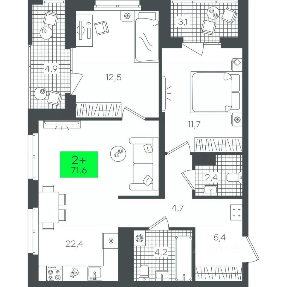 Продаётся 2-комнатная квартира в строящемся доме (В5.3 (Малкова, 19)), срок сдачи: III-кв. 2026, общей площадью 71.63 кв.м., на 14 этаже. Компания 4D приступила к строительству нового жилого комплекса "Гранд квартал". Новый ЖК находится в зеленой зоне Калининского района, южнее микрорайона Тюменская слобода.