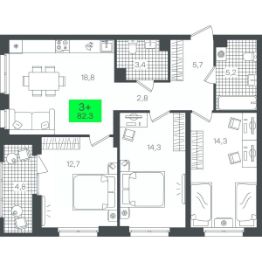 Продаётся 3-комнатная квартира в строящемся доме (В5.3 (Малкова, 19)), срок сдачи: III-кв. 2026, общей площадью 82.39 кв.м., на 3 этаже. Компания 4D приступила к строительству нового жилого комплекса "Гранд квартал". Новый ЖК находится в зеленой зоне Калининского района, южнее микрорайона Тюменская слобода.