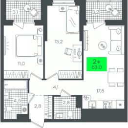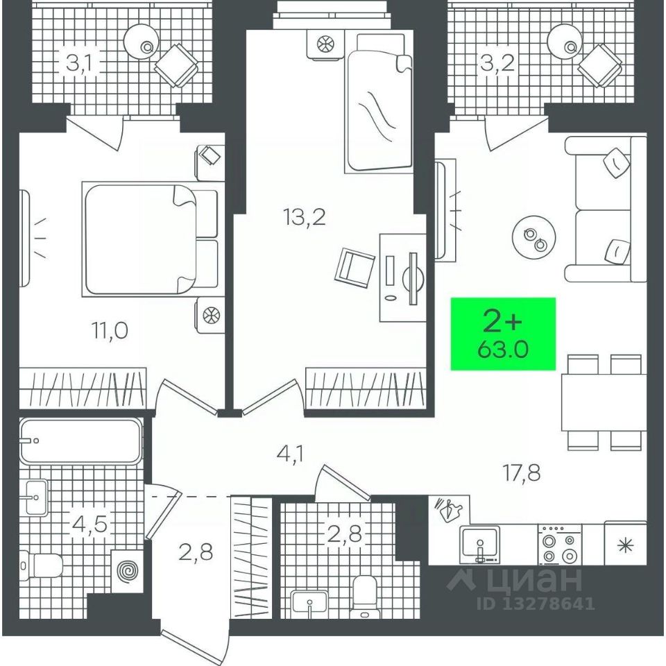 Продаётся 2-комнатная квартира в строящемся доме (3-В6.1 (Малкова, 15)), срок сдачи: III-кв. 2026, общей площадью 63.07 кв.м., на 17 этаже. Компания 4D приступила к строительству нового жилого комплекса "Гранд квартал". Новый ЖК находится в зеленой зоне Калининского района, южнее микрорайона Тюменская слобода.
