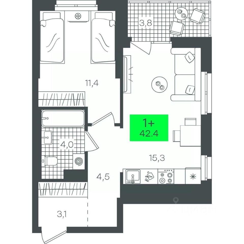 Продаётся 1-комнатная квартира в строящемся доме (3-В6.1 (Малкова, 15)), срок сдачи: III-кв. 2026, общей площадью 42.42 кв.м., на 17 этаже. Компания 4D приступила к строительству нового жилого комплекса "Гранд квартал". Новый ЖК находится в зеленой зоне Калининского района, южнее микрорайона Тюменская слобода.