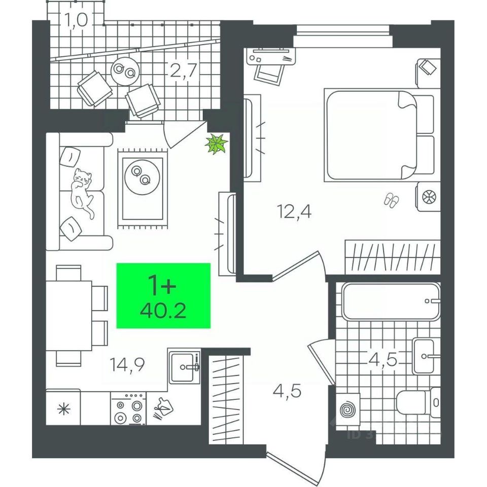 Продаётся 1-комнатная квартира в строящемся доме (Д5.2 (Малкова, 5)), срок сдачи: III-кв. 2026, общей площадью 40.27 кв.м., на 10 этаже. Компания 4D приступила к строительству нового жилого комплекса "Гранд квартал". Новый ЖК находится в зеленой зоне Калининского района, южнее микрорайона Тюменская слобода.