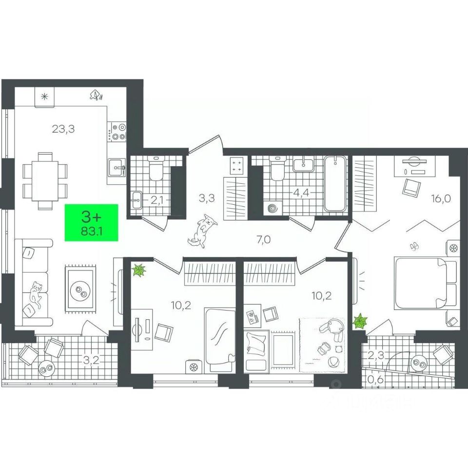 Продаётся 3-комнатная квартира в строящемся доме (1-Д3.1 (Глебова, 10)), срок сдачи: III-кв. 2026, общей площадью 83.1 кв.м., на 11 этаже. Компания 4D приступила к строительству нового жилого комплекса "Гранд квартал". Новый ЖК находится в зеленой зоне Калининского района, южнее микрорайона Тюменская слобода.