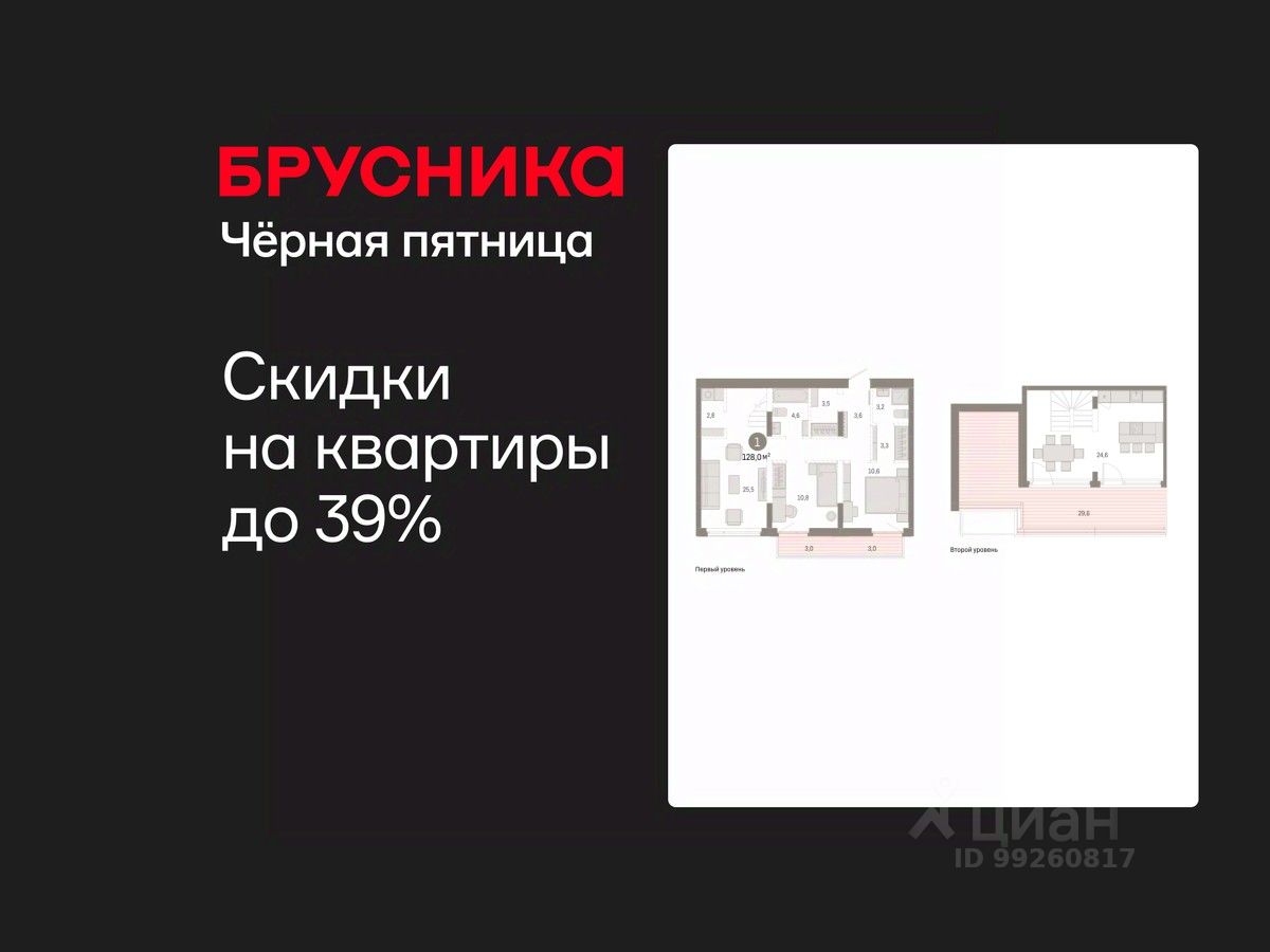 Продается 1-комн. квартира с предчистовой отделкой в ЖК "Республики 205" на 8 этаже. Общая площадь: 128.02 кв.м. Высота потолков 2.7 м.