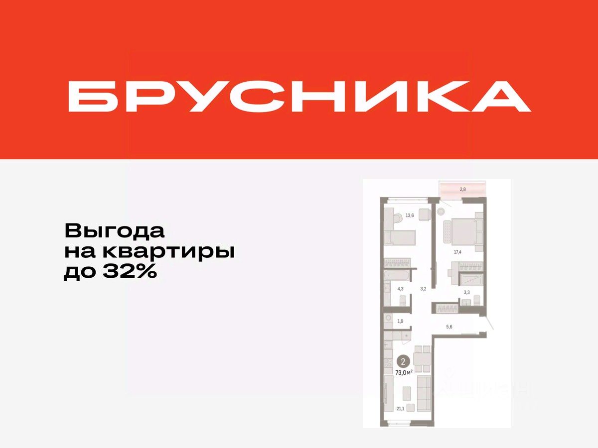2-комн. квартира от застройщика с предчистовой отделкой в ЖК "Республики 205" на 6 этаже. Общая площадь: 73 кв.м., жилая: 31 кв.м., площадь просторной кухни-гостиной: 21.1 кв.м. Квартира - распашонка, без проходных комнат, окна выходят на paзные стороны дома. В квартире один балкон, два совмещенных санузла. Высота потолков 2.7 м.