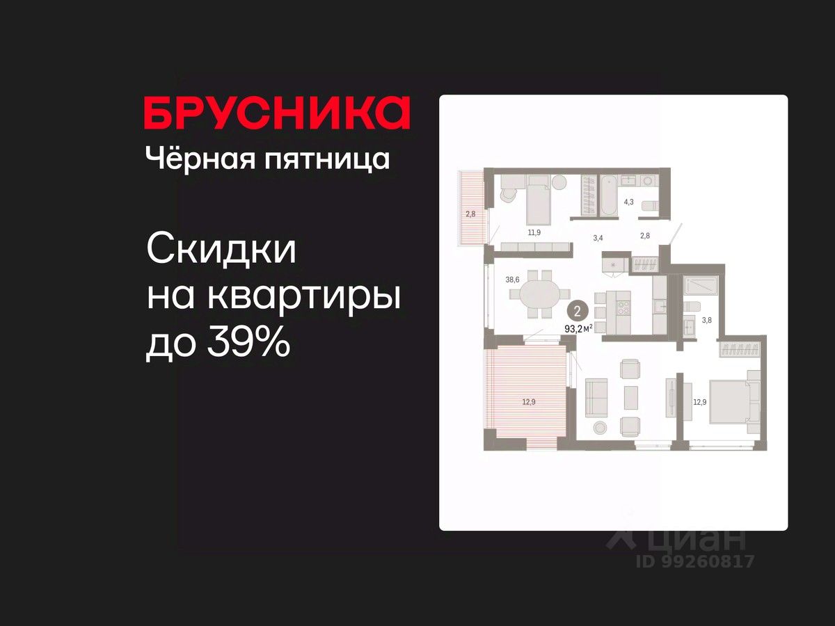 Двухкомнатная квартира от застройщика с предчистовой отделкой в ЖК "Республики 205" на 7 этаже. Общая площадь: 93.18 кв.м., жилая: 24.8 кв.м., площадь просторной кухни-гостиной: 38.6 кв.м. Угловая квартира, очень светлая, естественная вентиляция при открытии окон. В квартире один балкон и одна лоджия, два совмещенных санузла. Наличие в квартире террасы открывает возможность для создания зон отдыха в кругу семьи и друзей. Высота потолков 2.7 м.