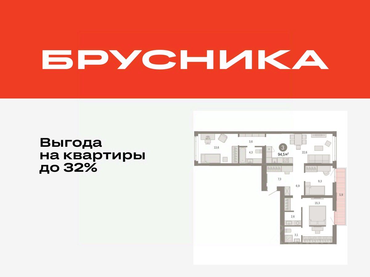 3-комн. квартира от застройщика с предчистовой отделкой в ЖК "Республики 205" на 8 этаже. Общая площадь: 94.45 кв.м., жилая: 38.2 кв.м., площадь просторной кухни-гостиной: 22.6 кв.м. Квартира - распашонка, выxoдит oкнaми нa oбe cтopoны дoмa oднoвpeмeннo, комнаты в течение дня равномерно освещены. В квартире два балкона, два совмещенных санузла. Высота потолков 2.7 м.