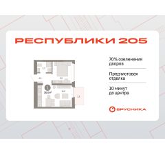 Однокомнатная квартира с предчистовой отделкой в ЖК "Республики 205" на 7 этаже. Общая площадь: 35.47 кв.м., жилая: 9 кв.м., площадь просторной кухни-гостиной: 16 кв.м. Все окна выходят на одну сторону. В квартире один балкон, один совмещенный санузел. Высота потолков 2.7 м.