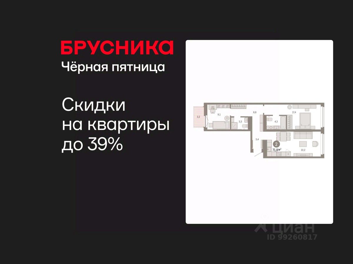 Просторная 2-комн. квартира с предчистовой отделкой в ЖК "Республики 205" на 2 этаже. Общая площадь: 71.78 кв.м. Высота потолков 2.7 м.