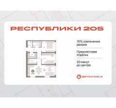 2-комн. квартира от застройщика с предчистовой отделкой в ЖК "Республики 205" на 15 этаже. Общая площадь: 72.39 кв.м., жилая: 23.4 кв.м., площадь просторной кухни-гостиной: 24.5 кв.м. Угловая квартира, идеально подойдет любителям тишины и панорамных видов. В квартире один совмещенный и один раздельный санузел. Высота потолков 2.7 м.