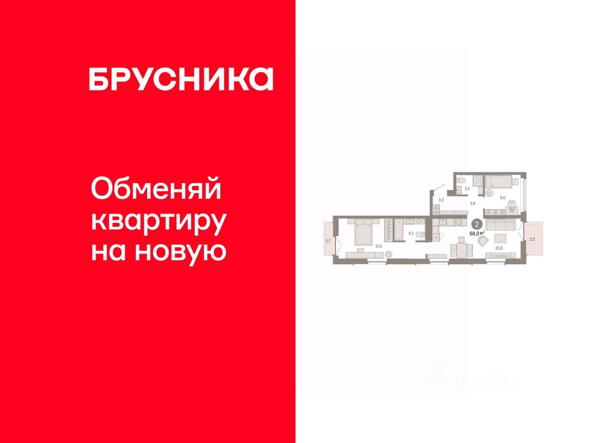 Просторная двухкомнатная квартира с предчистовой отделкой в ЖК "Республики 205" на 6 этаже. Общая площадь: 67.98 кв.м. Высота потолков 2.7 м.