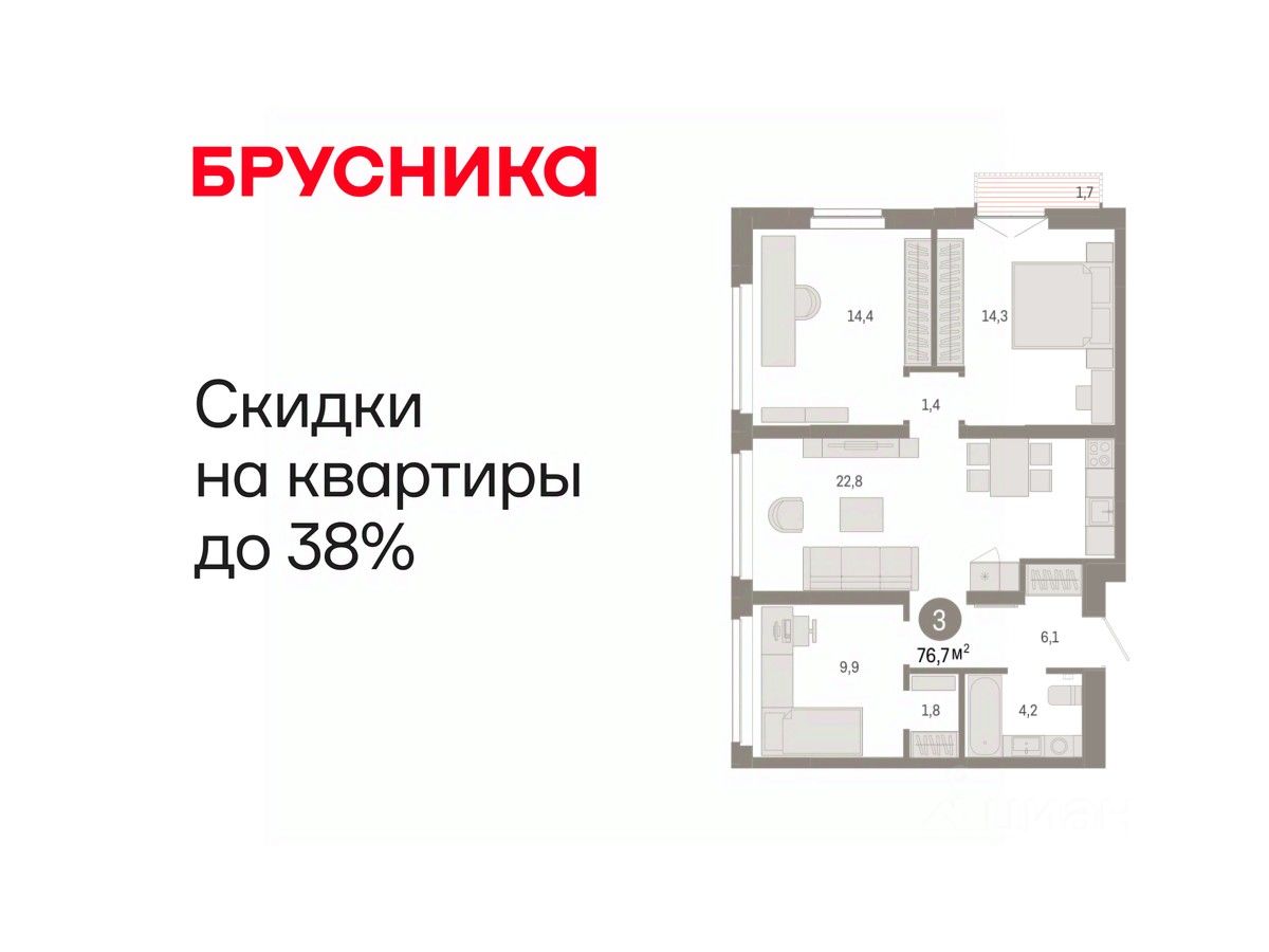 3-комн. квартира от застройщика с предчистовой отделкой в ЖК "Республики 205" на 8 этаже. Общая площадь: 76.66 кв.м., жилая: 38.6 кв.м., площадь просторной кухни-гостиной: 22.8 кв.м. Квартира угловая, идеально подойдет любителям тишины и панорамных видов. В квартире один балкон, один совмещенный санузел. Высота потолков 2.7 м.