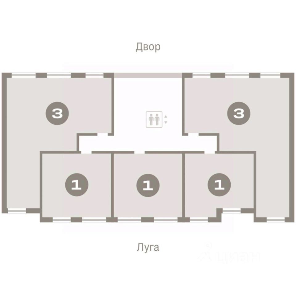 Квартира с кухней-гостиной и тремя спальнями в Октябрьском на Туре. Особенности планировки: гардеробная, вид во двор, лоджия, разнесённые спальни, предчистовая отделка, мастер-спальня, постирочная, балкон.