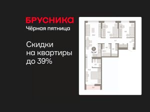 Квартира с кухней-гостиной и тремя спальнями в Октябрьском на Туре. Особенности планировки: гардеробная, вид во двор, лоджия, разнесённые спальни, предчистовая отделка, мастер-спальня, постирочная.