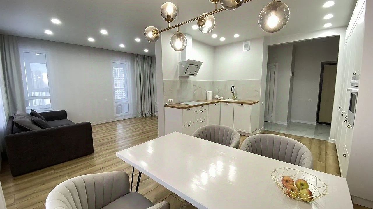 В квартире большие окна с низкими подоконниками. Удобная планировка включает просторную кухню, столовую зону, гостиную, спальни, гардеробную и технический шкаф. Квартира тёплая, светлая и уютная. Соседи порядочные и спокойные.