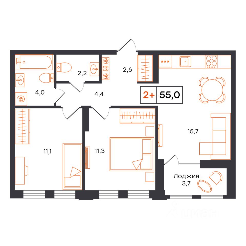 Продаётся 2-комнатная квартира в строящемся доме (ГП-1 (Амурская, 41)), срок сдачи: I-кв. 2027, общей площадью 55 кв.м., на 12 этаже. Новый жилой комплекс "УНО Умный квартал" от Специализированного застройщика "Четвертый квартал" расположен по адресу: г. Тюмень, по ул. Амурская.