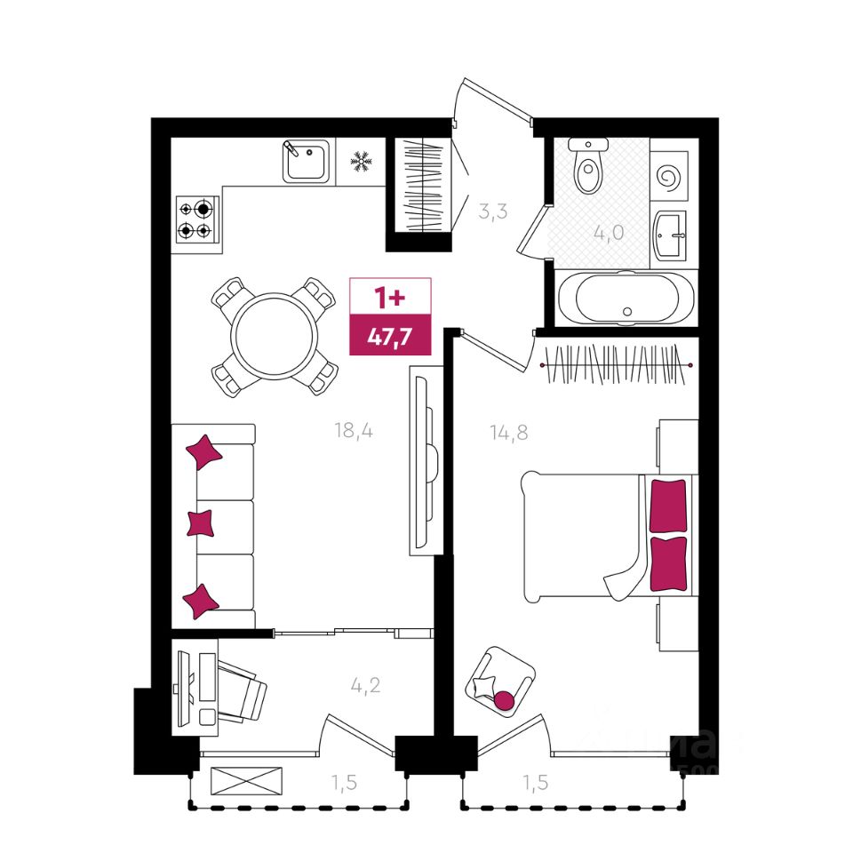 Продаётся 1-комнатная квартира в строящемся доме (ГП-1 (Амурская, 41)), срок сдачи: I-кв. 2027, общей площадью 47.7 кв.м., на 13 этаже. Новый жилой комплекс "УНО Умный квартал" от Специализированного застройщика "Четвертый квартал" расположен по адресу: г. Тюмень, по ул. Амурская.
