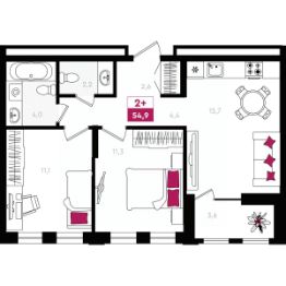 Продаётся 2-комнатная квартира в строящемся доме (ГП-1 (Амурская, 41)), срок сдачи: I-кв. 2027, общей площадью 54.9 кв.м., на 6 этаже. Новый жилой комплекс "УНО Умный квартал" от Специализированного застройщика "Четвертый квартал" расположен по адресу: г. Тюмень, по ул. Амурская.