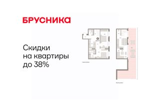 Двухуровневая квартира с кухней-гостиной и двумя спальнями в кварталах "На Минской". Особенности планировки: второй санузел, гардеробная, двухуровневая, мастер-спальня, окно в санузле, панорамное остекление, предчистовая отделка, терраса на крыше.
